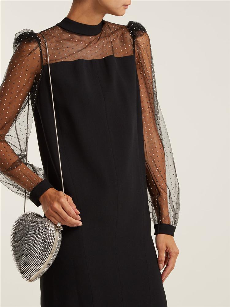 Chiếc túi xách trái tim đính đá nổi bật này nhìn thì tưởng chỉ hợp với những set đồ điệu đà lộng lẫy, thế mà Hà Hồ vẫn kết hợp cá tính đến không ngờ. Thiết kế được có giá £2,350 - khoảng 75 triệu đồng.