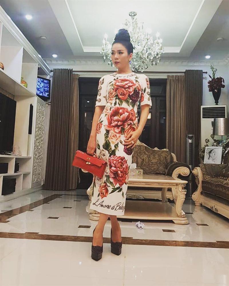 Diện cùng bộ đầm hoa hồng của Dolce&Gabbana, Lệ Quyên chọn túi Hermes có giá cũng phải đến vài trăm triệu đồng.