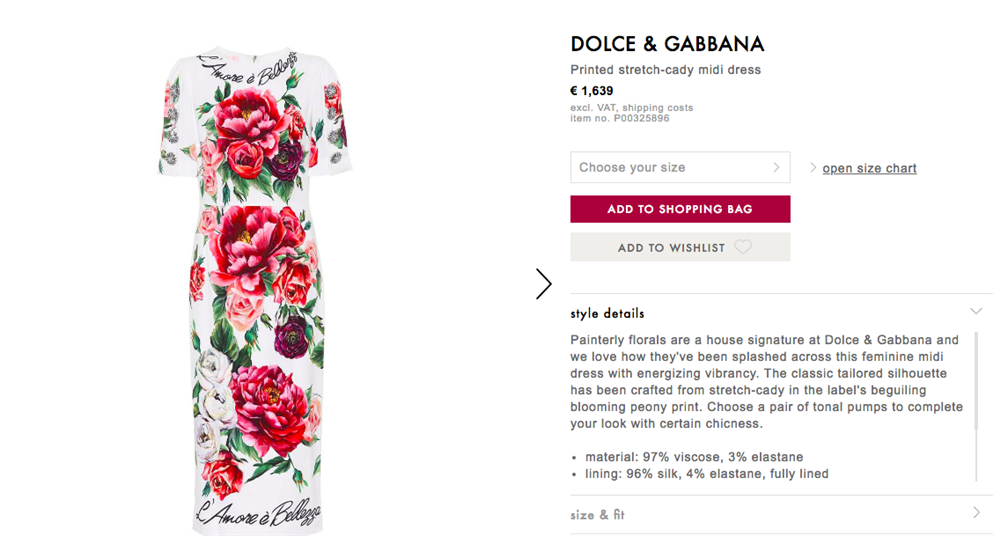 Bộ đầm hiện đang có giá €1,639 - khoảng 40 triệu đồng.