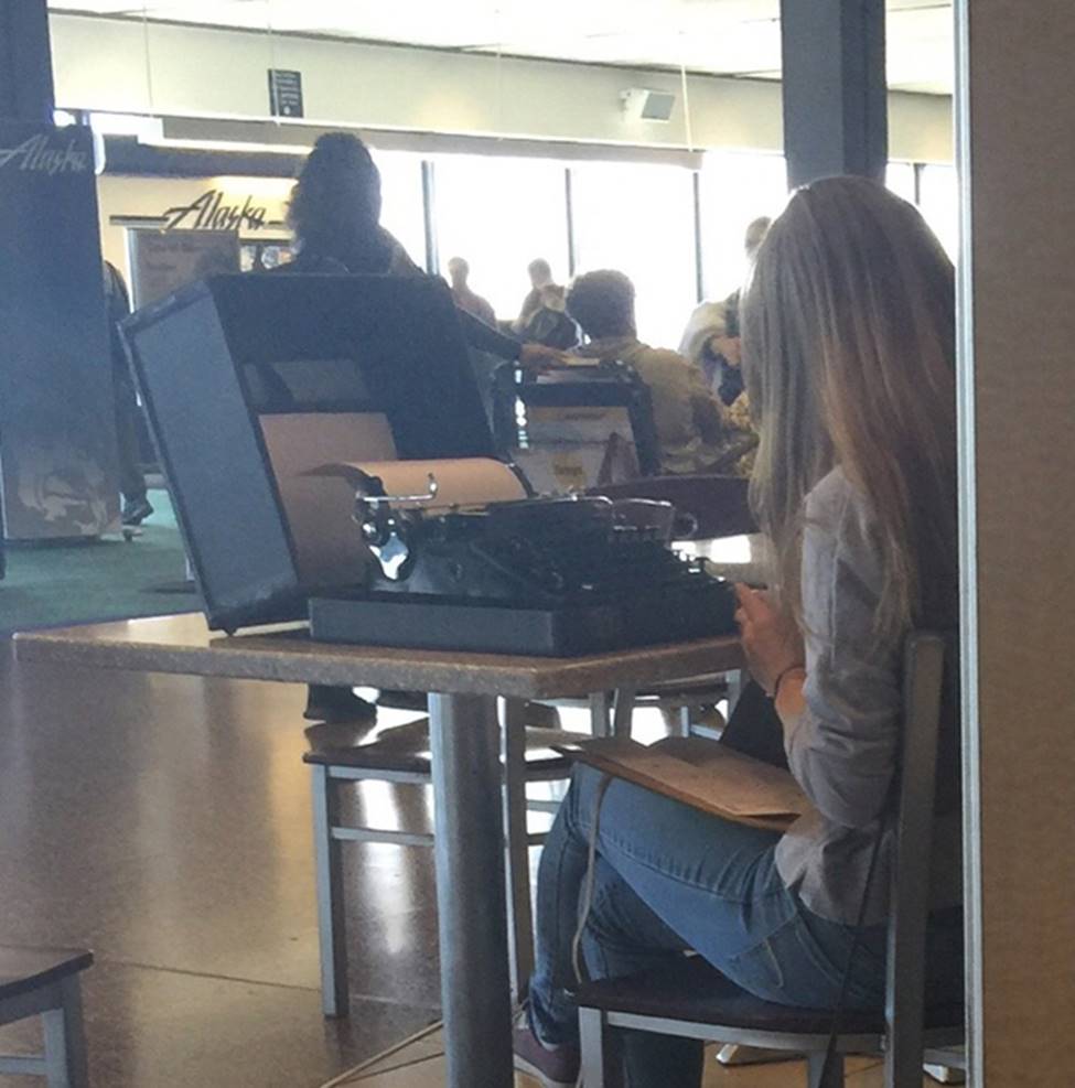 Tranh thủ làm việc lúc chờ đợi đến giờ bay.