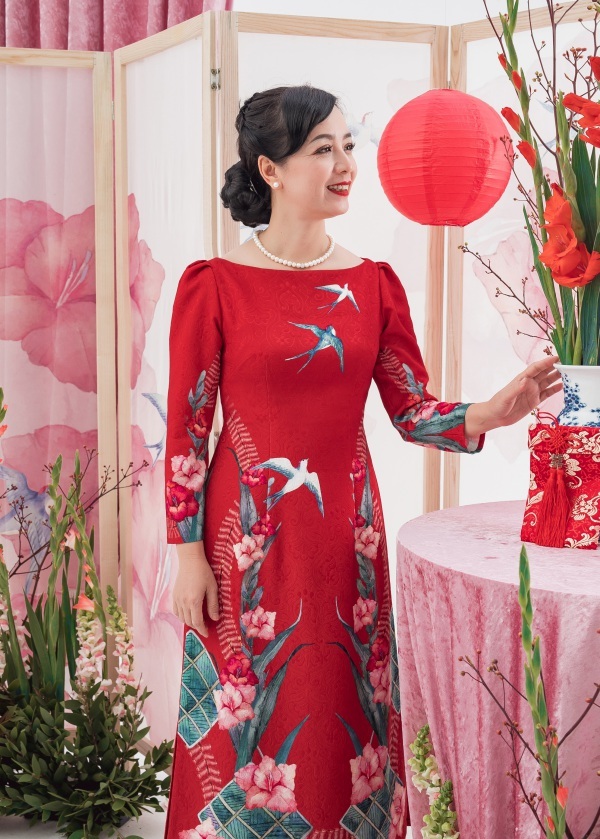 Nữ diễn viên bày tỏ niềm thích thú khi từ dáng áo đến hoạ tiết rực rỡ ngày Tết đều mang lại cảm xúc háo hức, phấn khởi cho người mặc về một năm mới may mắn, hạnh phúc và vẹn tròn.