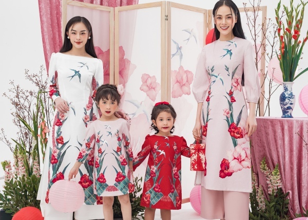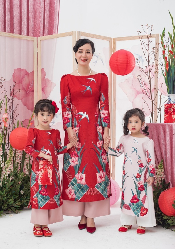 Không khí chộn rộn được lan toả bởi nữ diễn viên cùng các người mẫu, đặc biệt là người mẫu nhí với tinh thần hào hứng. Từng chiếc áo dài như một bức hoạ của niềm hân hoan khi Tết đến xuân về. Nơi đó có sự hiện hữu của bánh chưng xanh, của dây pháo đỏ, của những cánh chim én tìm tổ ấm, và cả bó lay ơn từ mẹ.