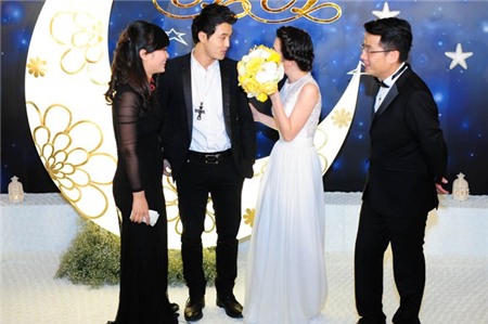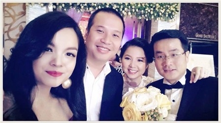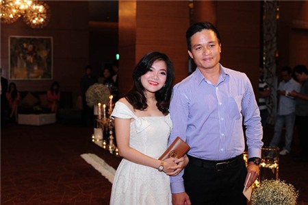 Thanh Ngọc - một thành viên khác trong nhóm Mắt Ngọc - hạnh phúc khoác tay chồng tới chúc mừng bạn thân. Tạm biệt con đường ca hát, Thanh Ngọc chủ yếu tập trung cho công việc MC và đóng phim.