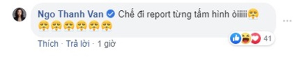 Bên dưới phần bình luận, Ngô Thanh Vân tiếp tục thể hiện sự bức xúc của bản thân khi cho biết đã báo cáo tất cả những bức ảnh mà Kacey Musgraves mặc quốc phục Việt Nam nhưng thiếu tôn trọng, gây nên sự phản cảm.