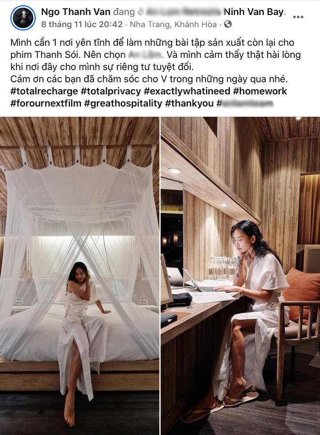 Hiếm hoi lắm fan của "đả nữ" mới được thấy cảnh nữ diễn viên nhắc chuyện "cậu và chúng ta" Ngày 25/11, Ngô Thanh Vân có lịch đi công tác và nghỉ dưỡng ở Nha Trang và sau đó là Phú Quốc. Tại thời điểm đó, Huy Trần trùng hợp cũng check-in tại khung cảnh tương tự cùng một cô gái giấu mặt. Đối chiếu với những hình ảnh mà Ngô Thanh Vân được "team qua đường" chụp lại, netizen nhận thấy nhiều điểm giống nhau giữa nữ diễn viên và cô gái trong ảnh của Huy Trần như chiếc váy trắng với tay dài bồng bềnh, kiểu tóc xoăn ngang lưng