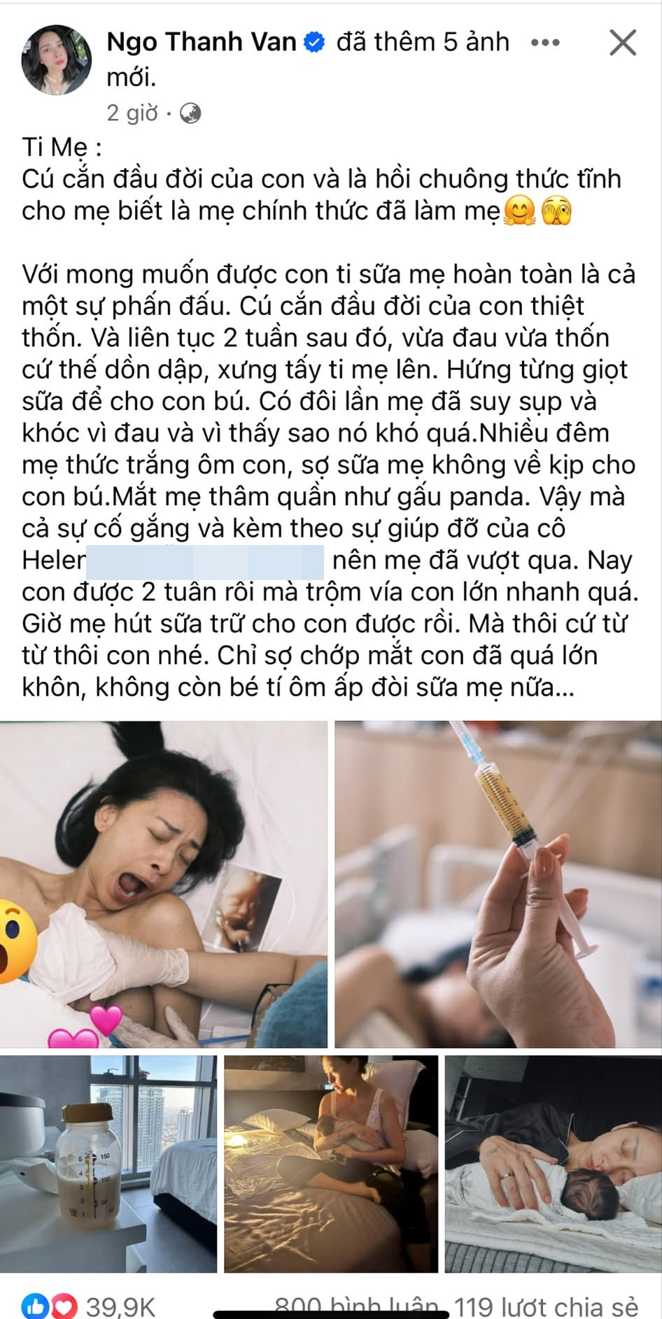 Kèm theo dòng chia sẻ về những trải nghiệm lần đầu khi lên chức mẹ bỉm sữa, Ngô Thanh Vân không ngần ngại công khai những khoảnh khắc "xấu xí" của bản thân nhưng vô cùng thiêng liêng đối với một người mẹ.