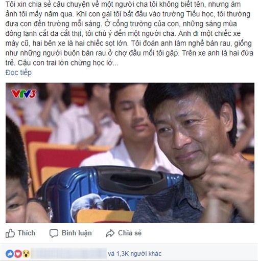 "Tôi xin chia sẻ câu chuyện về một người cha tôi không biết tên, nhưng ám ảnh tôi mấy năm qua. Khi con gái tôi bắt đầu vào trường Tiểu học, tôi thường đưa con đến trường mỗi sáng. Ở cổng trường của con, những sáng mùa đông lạnh cắt da cắt thịt, tôi chú ý đến một người cha. Anh đi một chiếc xe máy cũ, hai bên xe là hai chiếc sọt lớn. Tôi đoán anh làm nghề bán rau, giống như những người buôn bán rau ở chợ đầu mối tôi gặp. Trên xe anh là hai đứa trẻ. Cậu con trai lớn chừng học lớp 3 lớp 4 gì đó. Còn cô em gái thì nhỏ lắm, chắc đang học trường mẫu giáo.