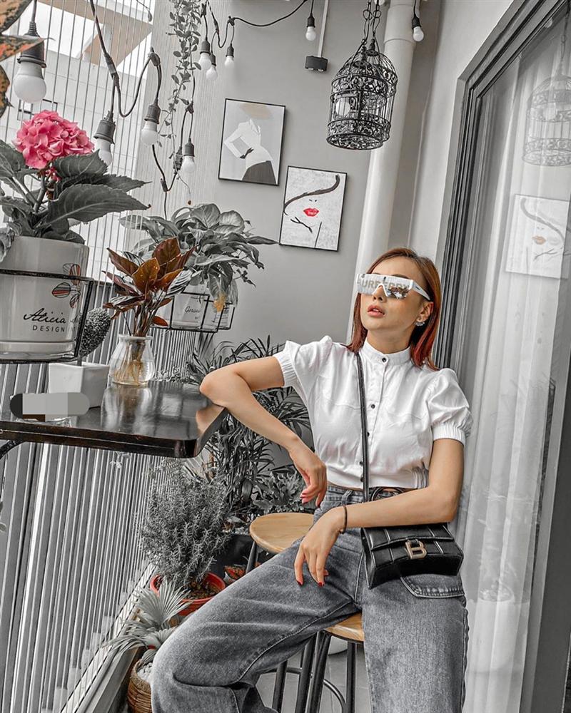 Những thiết kế áo blouse trắng nữ tính thanh lịch qua tay Phương Oanh bỗng chất lừ, thời thượng khó ai bằng. Street style của "cô giáo" cũng xuất hiện những món phụ kiện hàng hiệu sang chảnh đụng hàng với nhiều người đẹp Vbiz khác.