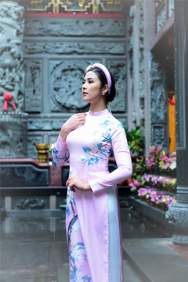 Ngọc Hân khoe dáng trong tà áo dài mang đậm không khí xuân.