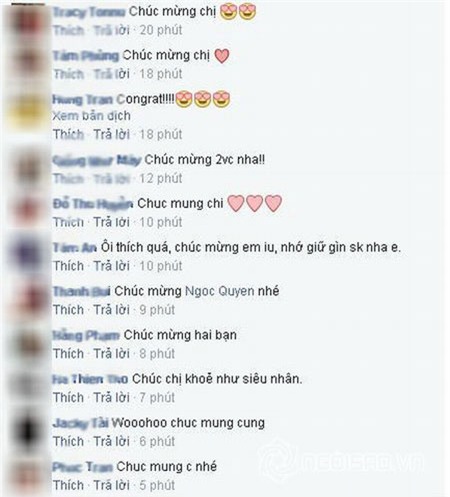 Ngay khi Ngọc Quyên chia sẻ thông tin, rất nhiều người hâm mộ và bạn bè gửi lời chúc mừng đến cô và ông xã. |