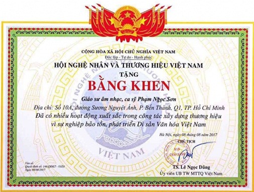 rõ tên và chức đánh người được nhận bằng là: Giáo sư âm nhạc, ca sĩ Phạm