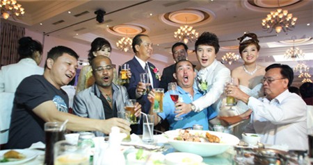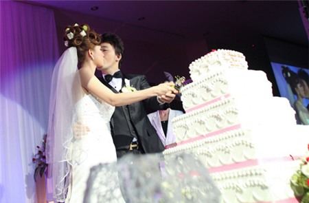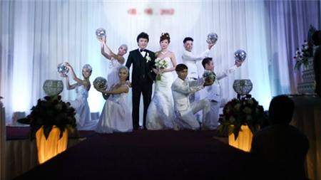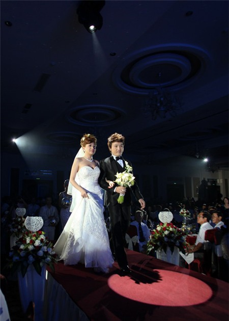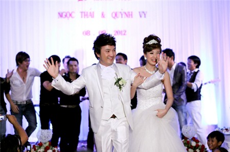 Dương Ngọc Thái và bà xã hạnh phúc trong ngày cưới. |