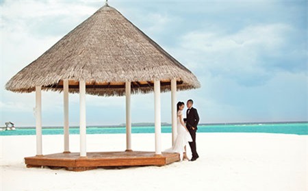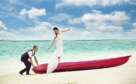 | Sau tiệc cưới tiền tỷ vào ngày 29/9, vợ chồng Ngọc Thạch mới chịu tiết lộ ảnh cưới đã thực hiện vào tháng 6 vừa qua. Không như nhiều sao Việt khác, siêu mẫu không chụp ảnh cưới tại các khu resort trong nước mà đưa cả ê kíp gồm nhiếp ảnh, stylist và chuyên gia trang điểm sang quần đảo Maldives. |