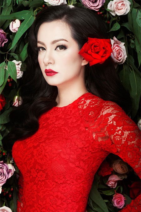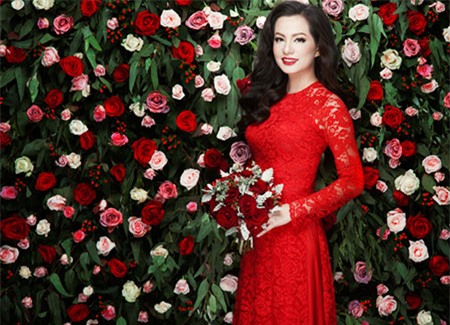 Ngọc Thúy khoe sắc lộng lẫy với áo dài đỏ... |