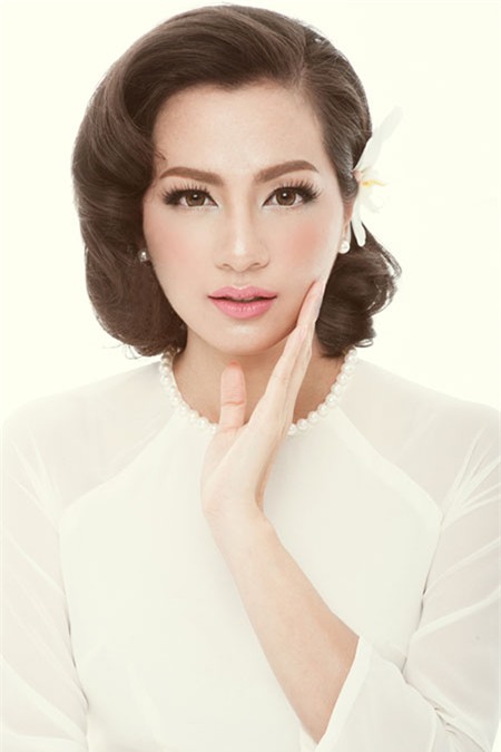 thả và nhan sắc rực rỡ. Bên cạnh hai bộ áo dài, Ngọc Thúy cũng diện váy