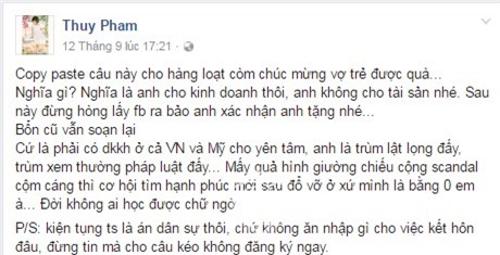 7 ngày liên tiếp, Ngọc Thúy luôn viết status trên Facebook để chửi mắng, nói xấu đại gia