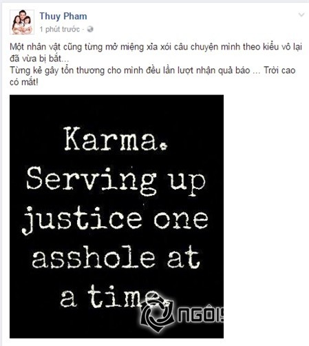 Không những thế, Ngọc Thúy còn tuyên bố một nhân vật từng mở miệng xỉa xói câu chuyện của cô theo kiểu vô lại đã vừa bị bắt.