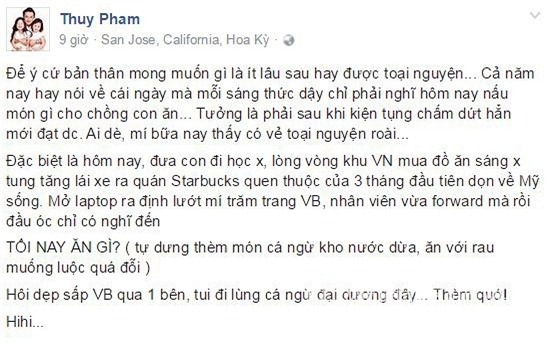 Riêng Ngọc Thúy, sau thời gian dài "bóc phốt" chồng cũ, cô đã không còn "đăng đàn" với tâm trạng bức xúc như trước nữa. Những ngày gần đây, Ngọc Thúy chia sẻ rất nhẹ nhàng về cuộc sống bên chồng luật sư và các con. Cô còn tự tay vào bếp để nấu những món ăn ưa thích của cả nhà.