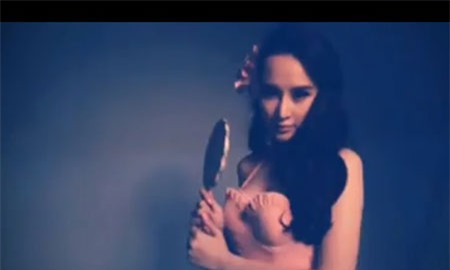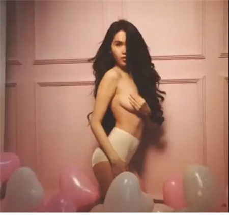 Hình ảnh Angela Phương Trinh xoay ngực trần vào trái tim khổng lồ