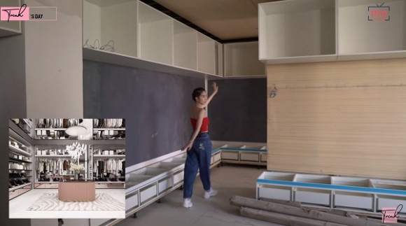 Lần đầu tiên Ngọc Trinh tiết lộ toàn cảnh không gian trong căn biệt thự triệu đô đang được hoàn thiện.