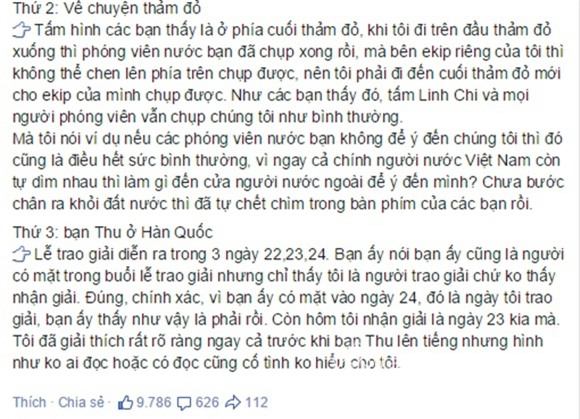 Ngọc Trinh vừa đăng tải một dòng chia sẻ gây chú ý trên facebook cá nhân. Sau khi bị công chúng "tố" là lừa đảo về việc nhận giải thưởng "Nữ hoàng bikini châu Á", Ngọc Trinh đã "đăng đàn" đáp trả. Người đẹp tỏ ra bức xúc với những tin đồn nói trên và đưa ra những lời giải thích để chứng minh bản thân trong sạch và không lừa dối ai.