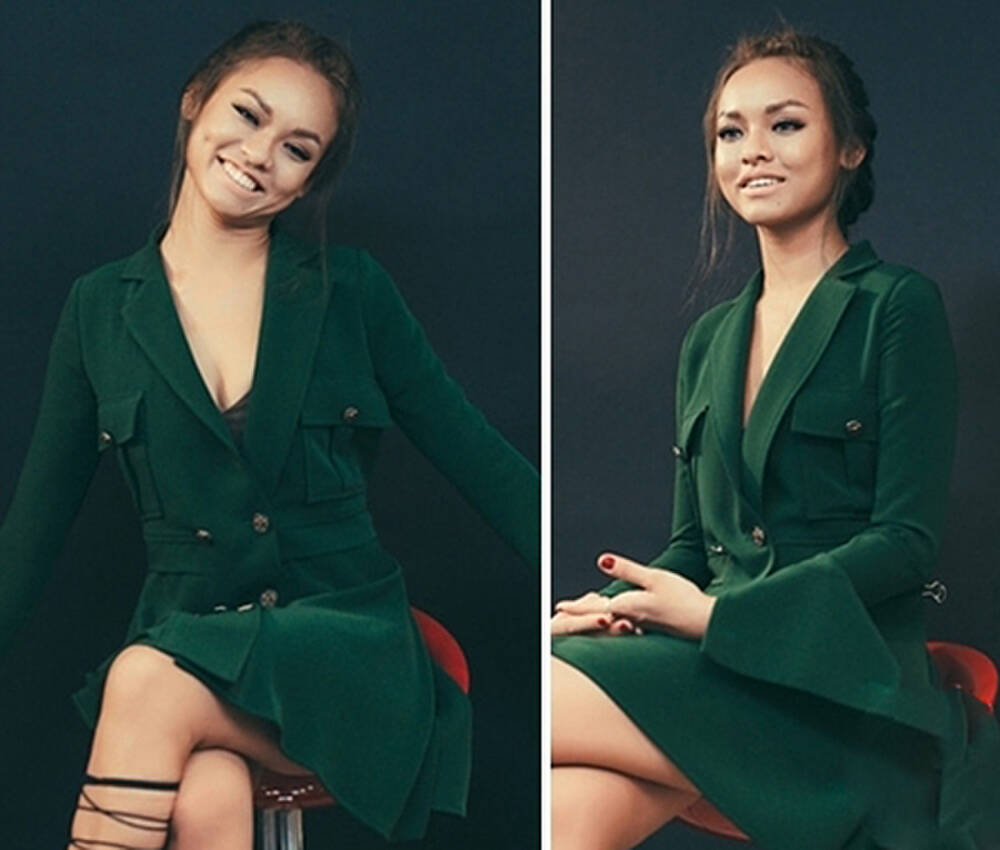 Nhìn hình ảnh chụp Huyền My từ chính diện, ít ai ngờ được đằng sau vẻ vừa vặn chỉn chu là sự trợ giúp hết công suất của kẹp giấy. Sự đối lập này làm không ít cư dân mạng phải phì cười.