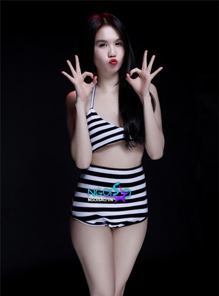 Trong hậu trường một buổi chụp hình mới nhất cho Đêm hội chân dài 7, "Nữ hoàng đồ lót" Ngọc Trinh diện "cây sọc đen trắng" khoe làn da "trứ danh" của mình.