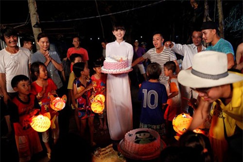 Bạn bè của người đẹp như stylist Đỗ Long, Trà Ngọc Hằng, nhiếp ảnh Lê Thiện Viễn... lặn lội đường xa đến Đồng Tháp mừng tuổi mới với cô.