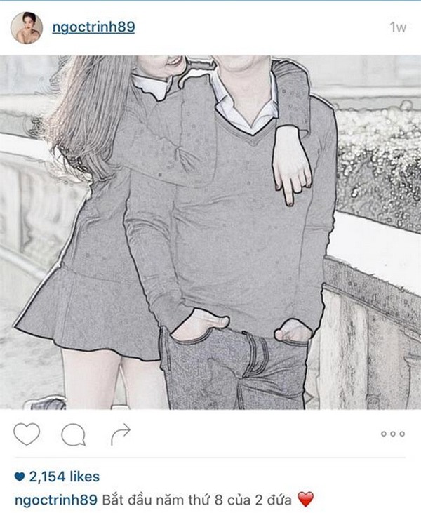 Mới đây, "nữ hoàng nội y" Ngọc Trinh tiếp tục đăng tải hình ảnh của cô và người yêu với dòng chú thích "Bắt đầu năm thứ 8 của 2 đứa" khiến nhiều người ghen tị với tình yêu của cô nàng. Suốt khoảng thời gian yêu nhau, Ngọc Trinh luôn dành những lời có cánh cũng như sự kính trọng dành cho người mình yêu. Cô không hề phủ nhận việc mình được bạn trai đại gia lo liệu cho nhiều thứ nhưng chính bạn trai cũng dạy cho cô về cách kinh doanh kiếm tiền và giờ đây cô có thể tự mình làm mọi việc mà không cần phụ thuộc quá nhiều vào bạn trai. Và sau 8 năm yêu nhau, "nữ hoàng nội y" Ngọc Trinh vẫn đang hạnh phúc với tình yêu của mình điều đó là động lực giúp cô tiếp tục phát triển sự nghiệp kinh doanh, làm hình ảnh của mình trong mắt người hâm mộ ngày càng đẹp hơn. Không muốn nói quá nhiều về tương lai, Ngọc Trinh chỉ muốn tận hưởng trọn vẹn những giây phút hạnh phúc hiện tại của mình.