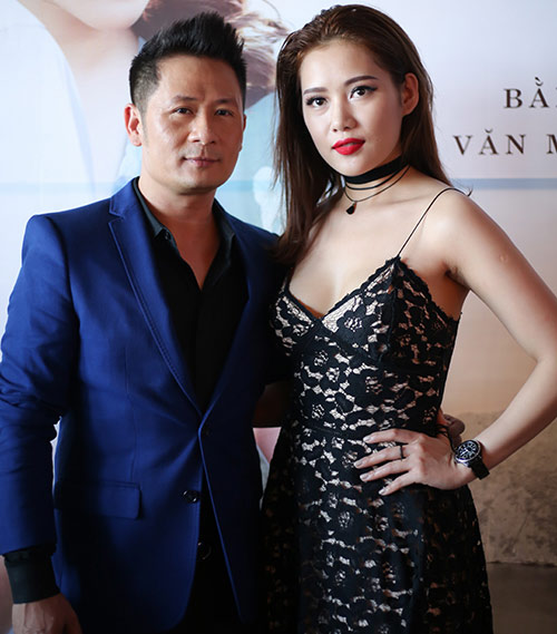 Ca sĩ Bằng Kiều chụp ảnh cùng bạn gái Tiến Đạt khi anh ra mắt dự án âm nhạc mới.