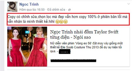 Ngọc Trinh chia sẻ: "Copy có chỉnh sửa, chọn lọc mà đẹp vẫn hơn copy 100% mà nhận là mình thiết kế".