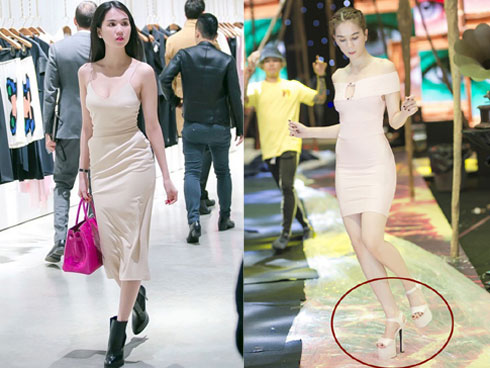 Vẫn là item chất liệu jeans nhưng Ngọc Trinh "lên đồ" năng động cùng short và áo hai dây của Gucci.