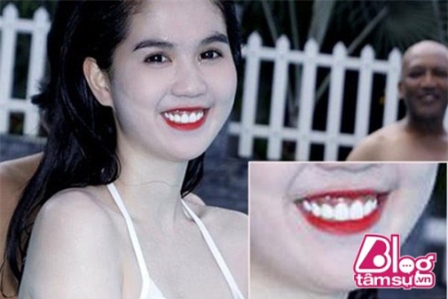 Màu răng khá xỉn chứ không thực sự trắng sáng là một điểm trừ của Ngọc Trinh ngày xưa