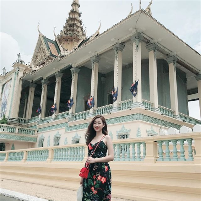Không diện váy trắng thì lại diện váy hông nhạt dáng trễ vai. Nếu như váy trắng nhẹ nhàng tinh khôi như nữ sinh thì thiết kế trễ vai này lại yêu kiều và gợi cảm hơn khi khoe kheo bờ vai trần nuột nà mềm mại dưới nắng hè.