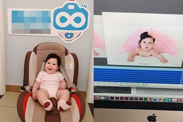 Siêu mẫu Hà Anh chia sẻ hình ảnh con gái đầu lòng lần đầu tạo dáng làm mẫu chụp hình, cô viết: "Hôm nay Myla làm người mẫu! Các bác chờ hình hot của Myla nhé!"