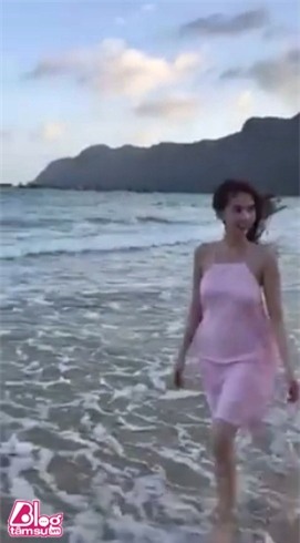 Mới đây, bạn thân của Ngọc Trinh đã đăng tải video quay lại giây phút bước đi quyến rũ của người đẹp trên bãi biển. Mỹ nhân quê Trà Vinh diện chiếc váy 2 dây màu hồng, mỏng manh siêu cuốn hút. Khi bị những cơn gió mạnh tạt vào người, cơ thể của Ngọc Trinh “lồ lộ” ra trước ống kính. Vòng 1 của người đẹp bị đánh giá là kém săn chắc, chảy xệ.