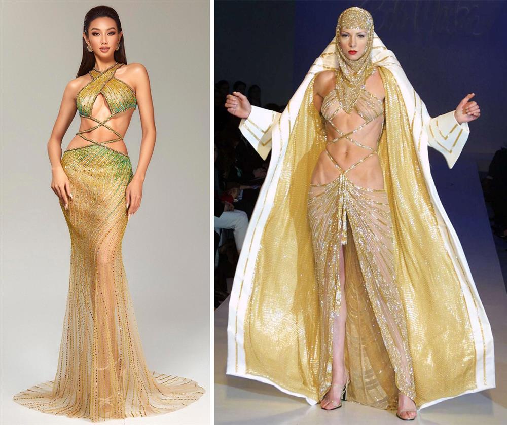 Sau một thời gian sự việc bị "chìm xuồng", chân dài Trà Vinh tiếp tục gây xôn xao khi mặc bộ đầm giống đến 70-80% so với trang phục trong BST Mùa thu 2022 của Georges Hobeika - NTK người Li-băng nổi tiếng với những thiết kế Couture cao cấp và tinh tế thường được mặc bởi những nhân vật hoàng gia Trung Đông. Georges Hobeika còn là nhà thiết kế yêu thích của những gương mặt vô cùng nổi tiếng ở Châu Á như: Chương Tử Di, Phạm Băng Băng, Aishwarya Rai hay Lý Nhã Kỳ.