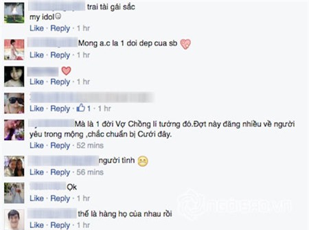 Thời gian gần đây, trang cá nhân của Khắc Tiệp và Ngọc Trinh liên tục chia sẻ những status về tình yêu và nhiều lời ngọt ngào cho nhau. Vì vậy, trước phát ngôn mới với nội dung khá "ỡm ờ" của Ngọc Trinh, không ít người hâm mộ lại tiếp tục nuôi hy vọng cặp trai tài gái sắc này sẽ có cái kết hạnh phúc bên nhau.