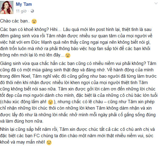 và làm đúng hơn nữa". Mỹ Tâm chia sẻ.