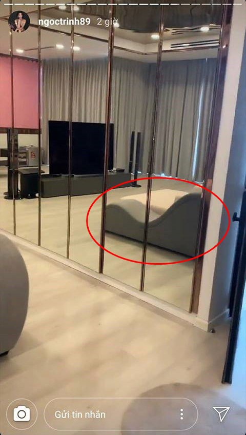 Bên cạnh đó, nội thất trong phòng ngủ của Ngọc Trinh cũng rất quý phái, sang trọng. Tuy nhiên, điều mà dân tình chú ý nhiều nhất không phải là những thứ xa hoa kể trên, mà lại là chiếc "ghế tình nhân" nằm gọn gàng trong đó. Vì chiếc ghế này có tác dụng "khá nhạy cảm" nên chắc hẳn dân tình sẽ rất tò mò khi Ngọc Trinh sắm món đồ này cho phòng ngủ của cô.