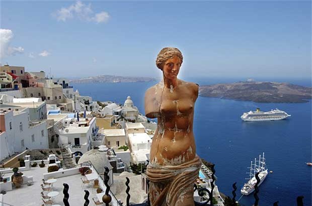 triệt để về màu sắc đến nỗi nhìn tổng thể Santorini như một giỏ đựng đầy