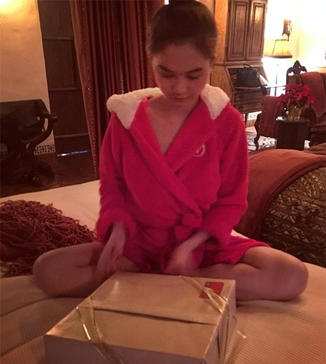 Trong căn phòng ngủ rộng lớn, cô mặc áo choàng ngủ, búi tóc gọn khi ngồi trên giường mở quà. Chưa dừng lại, tối cùng ngày, khoảnh khắc cô đứng bên cây thông Noel và tấm ảnh doanh nhân Hoàng Kiều được công bố như lời đáp án cho mọi câu hỏi.