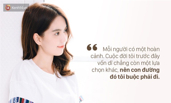 Qua những người bạn, tôi có nghe ở quê Trà Vinh nhiều người nói Ngọc Trinh là một hình mẫu để những cô gái nghèo cố gắng vươn lên, chạm tới ước mơ đổi đời. Nhưng nếu chỉ là ý chí vươn lên hay sự hiếu thảo đối với gia đình còn là điều tích cực, chứ làm sao có thể cổ vũ một đứa trẻ đi bỏ học ngang, dấng thân lên Sài Gòn một mình kiếm sống. Mỗi người có một hoàn cảnh, một cái duyên chứ không đảm bảo ai cũng sẽ giàu lên như “trên trời rơi xuống”. Cuộc đời tôi trước đây vốn dĩ chẳng còn một lựa chọn khác, nên con đường đó tôi buộc phải đi.