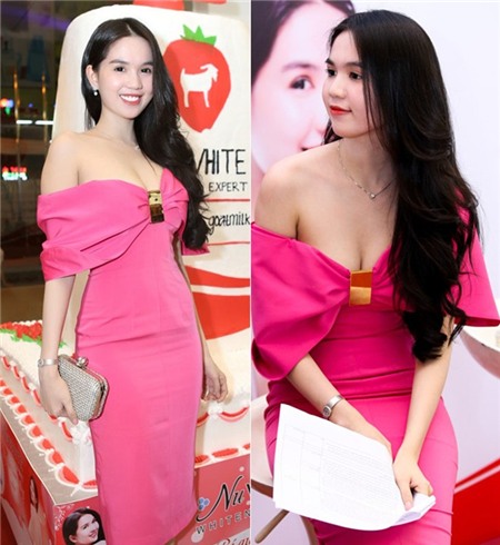 vai trò làm gương mặt đại diện, Ngọc Trinh nổi bật với bộ váy hồng,