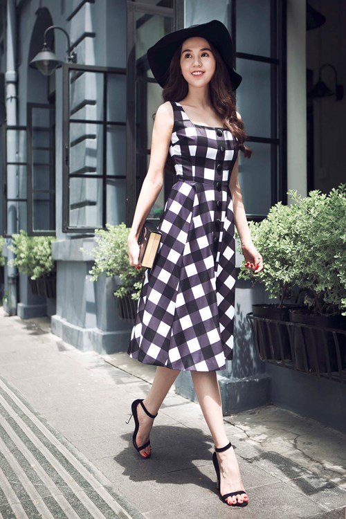 Ngọc Trinh xuống phố với phong cách cổ điển.