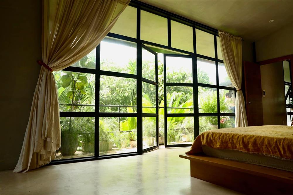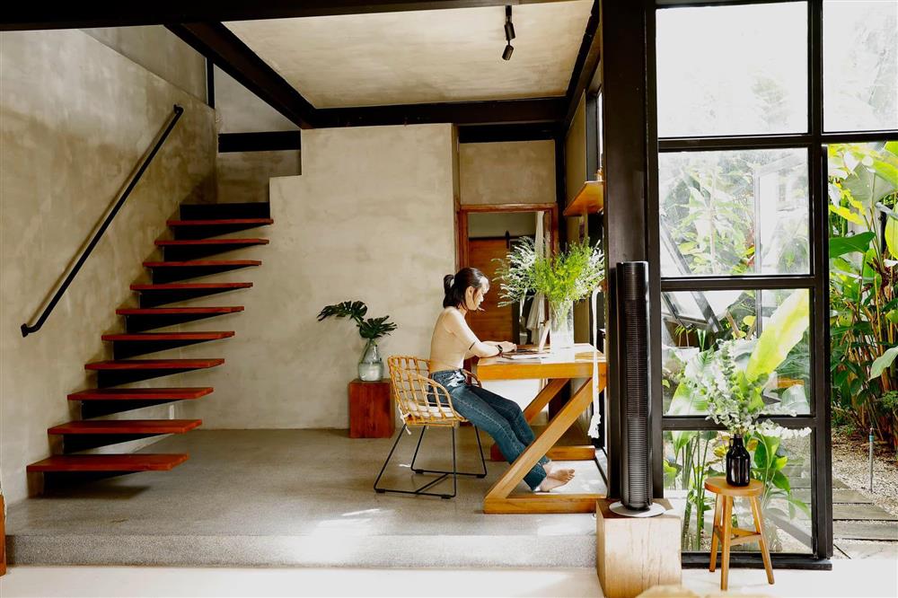 Mỗi khi công việc bên ngoài quá mệt, trở về nhà, ngồi bên bục gỗ, nhìn đám cây xanh xuyên qua khung kính… chị cảm giác thật yên bình…
