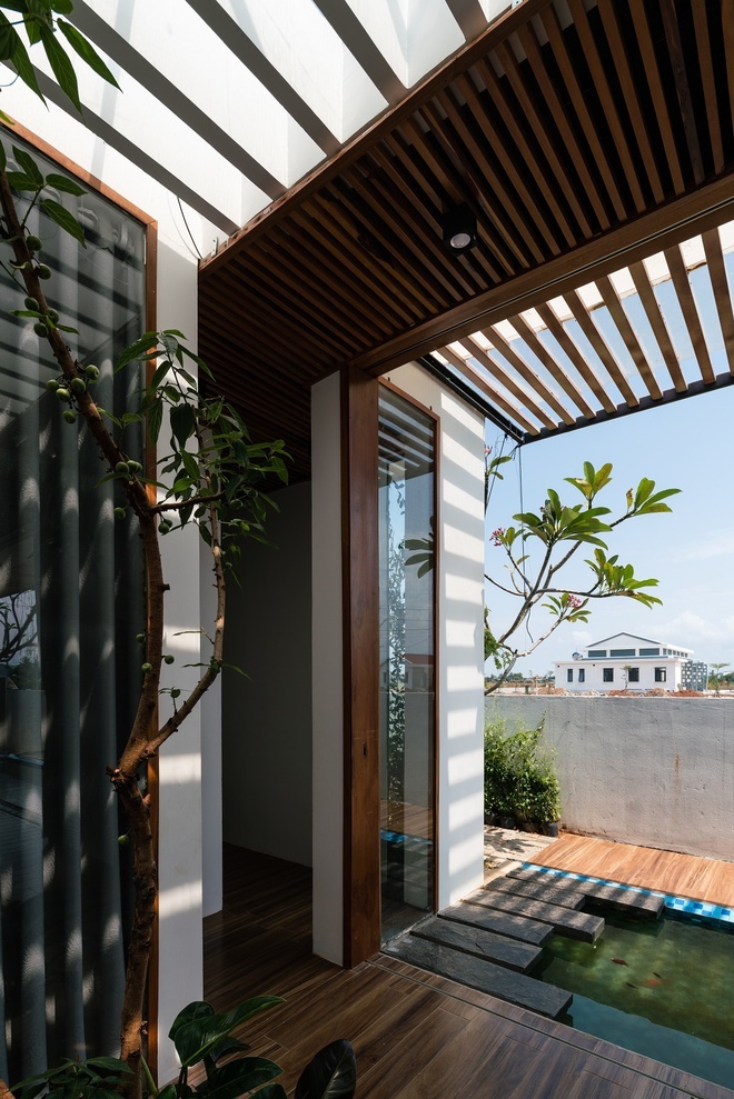 Kiến trúc sư của CIA Studio đã đề xuất giải pháp thiết kế đảm bảo cho ngôi nhà đủ ánh sáng và không khí mà vẫn thích ứng được với khí hậu nhiệt đới ẩm gió mùa của miền Trung.