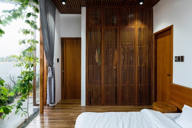 Cửa phòng ngủ mở trực tiếp ra hông nhà.