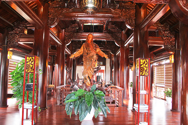 Bức tượng đức mẹ được khắc từ một loại gỗ quý tại tầng 5 của ngôi nhà.