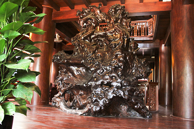 Không gian thoáng đãng trên tầng 3 được bài trí bằng 1 bộ rễ cây Đinh hương cao tới 3m, rộng 2,8m. Được gia chủ bật mí, đây là gốc rễ có tuổi đời hàng trăm năm.